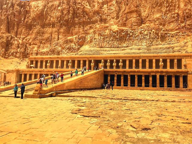 Our sacred journey also led us to the awe-inspiring Temple of Hatshepsut (pronounced "Hat-cheap-suit"), a marvel carved directly into the cliffs of Deir el-Bahari. This grand mortuary temple honours one of the most powerful female pharaohs of Egypt. As we approached, the terraces appeared to rise in quiet majesty from the earth, echoing her strength and visionary rule.